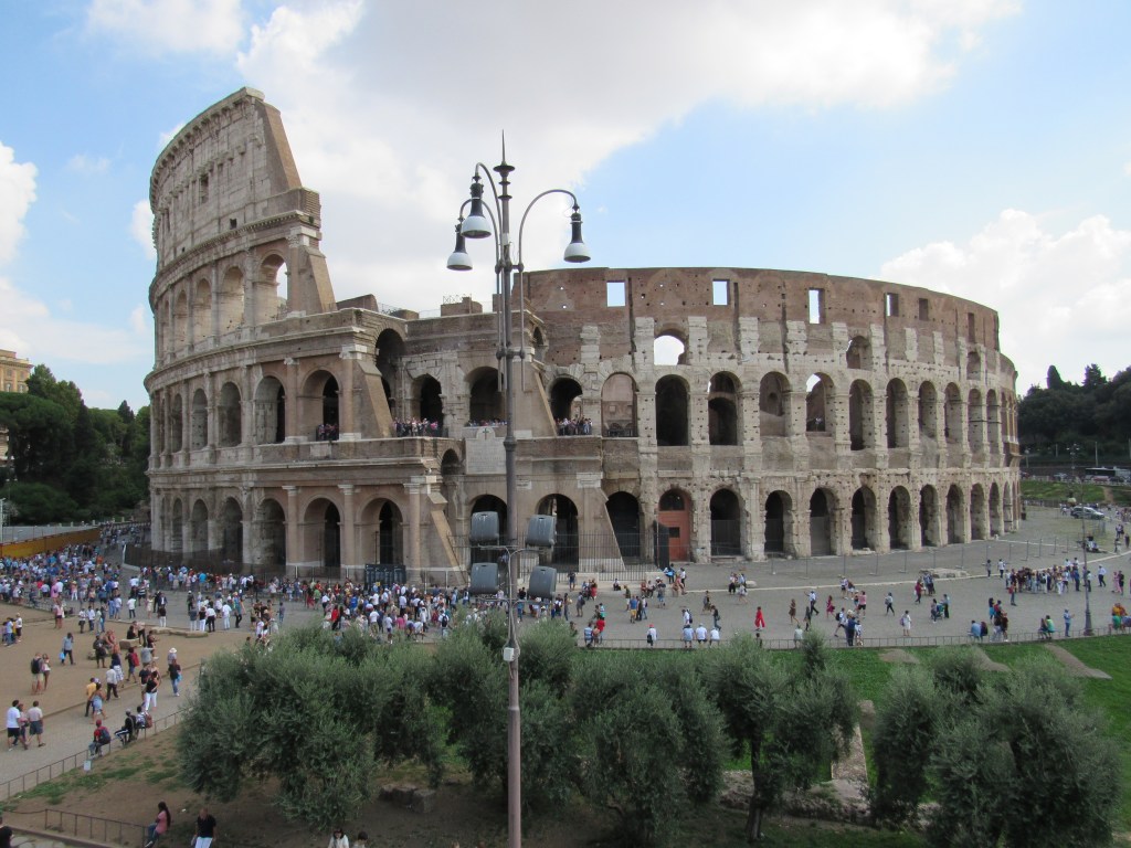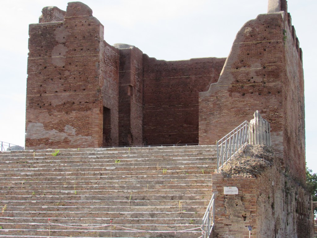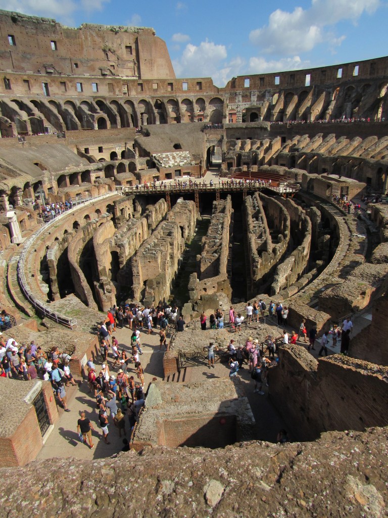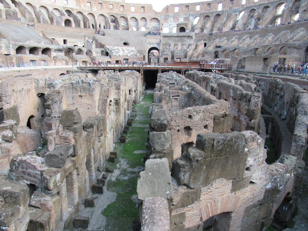 The Colosseum, RomeColosseum, interiorThe ColosseumStairs, The ColosseumThe Colosseum, rooms and passageways (the hypogeum) under the arenaThe Baths of Caracalla, now an archeological park (walking distance from the Colosseum but nearly deserted)Remains of an upper floor (now collapsed, obviously) – the Baths of CaracallaAnother collapsed upper floor, the Baths of CaracallaOstia Antica, building remainsOstia Antica, street sceneOstia Antica, floor of a buildingOstia Antica, amphitheaterOstia Antica, main templeOstia Antica, warehouses